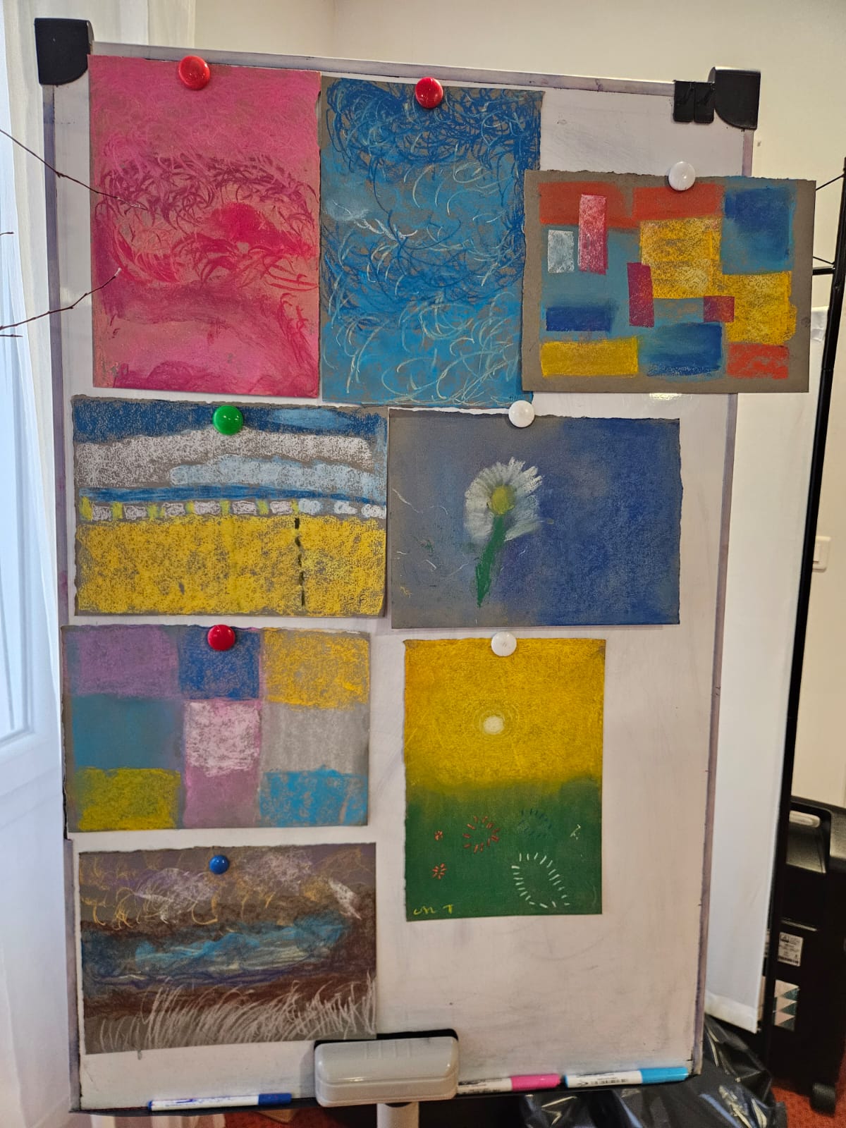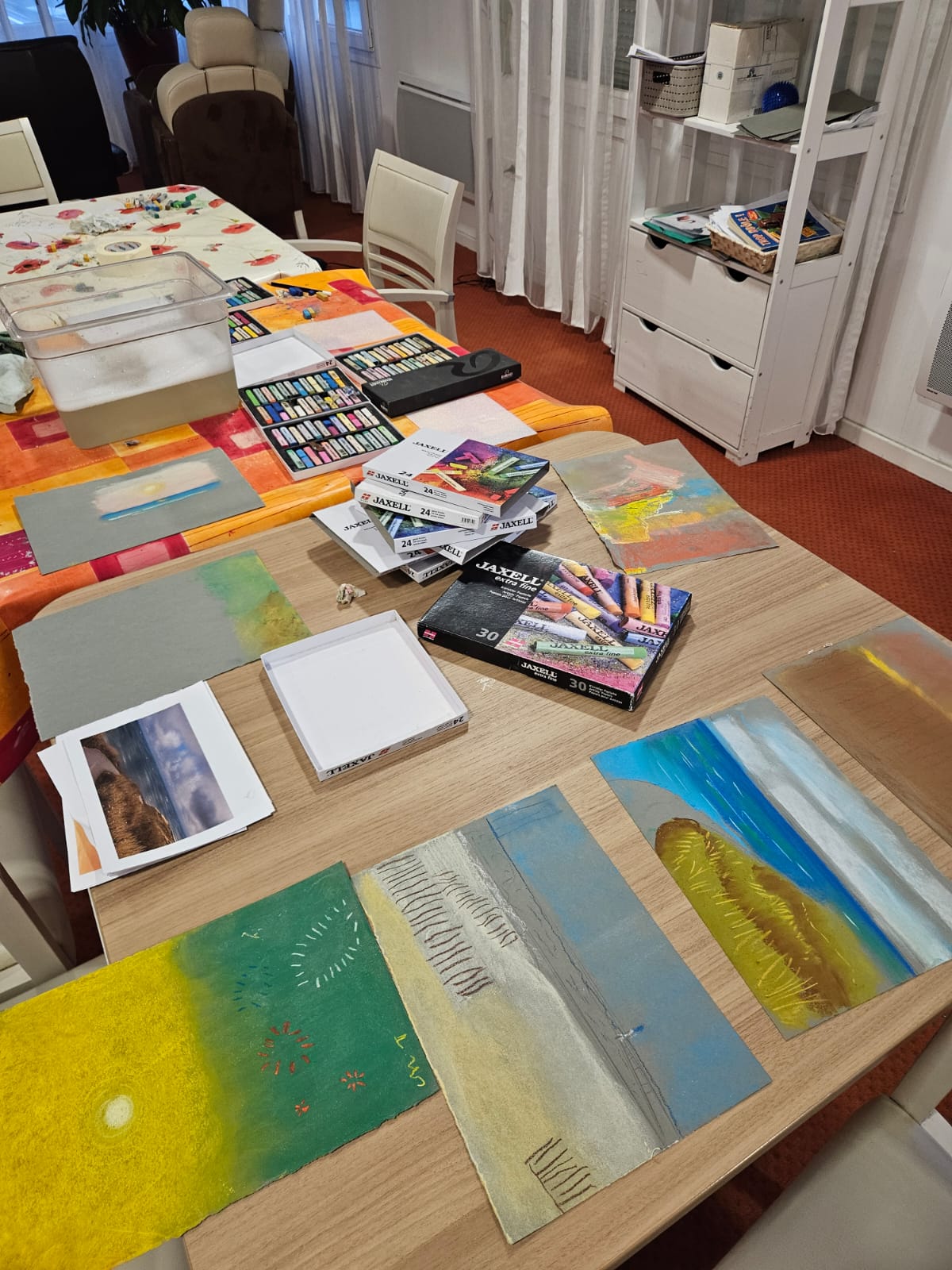 Encore une belle après-midi en compagnie de deux participantes très motivées. Objectif du jour: comprendre les mélanges de couleurs pour gagner en autonomie et liberté pour leurs prochaines peintures!