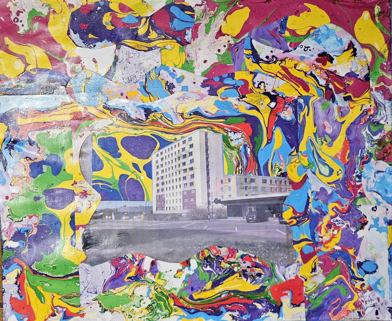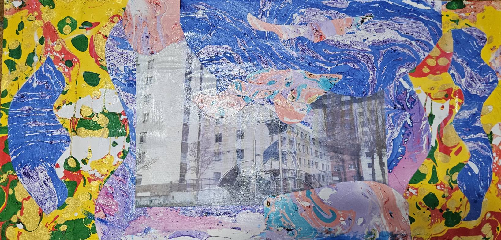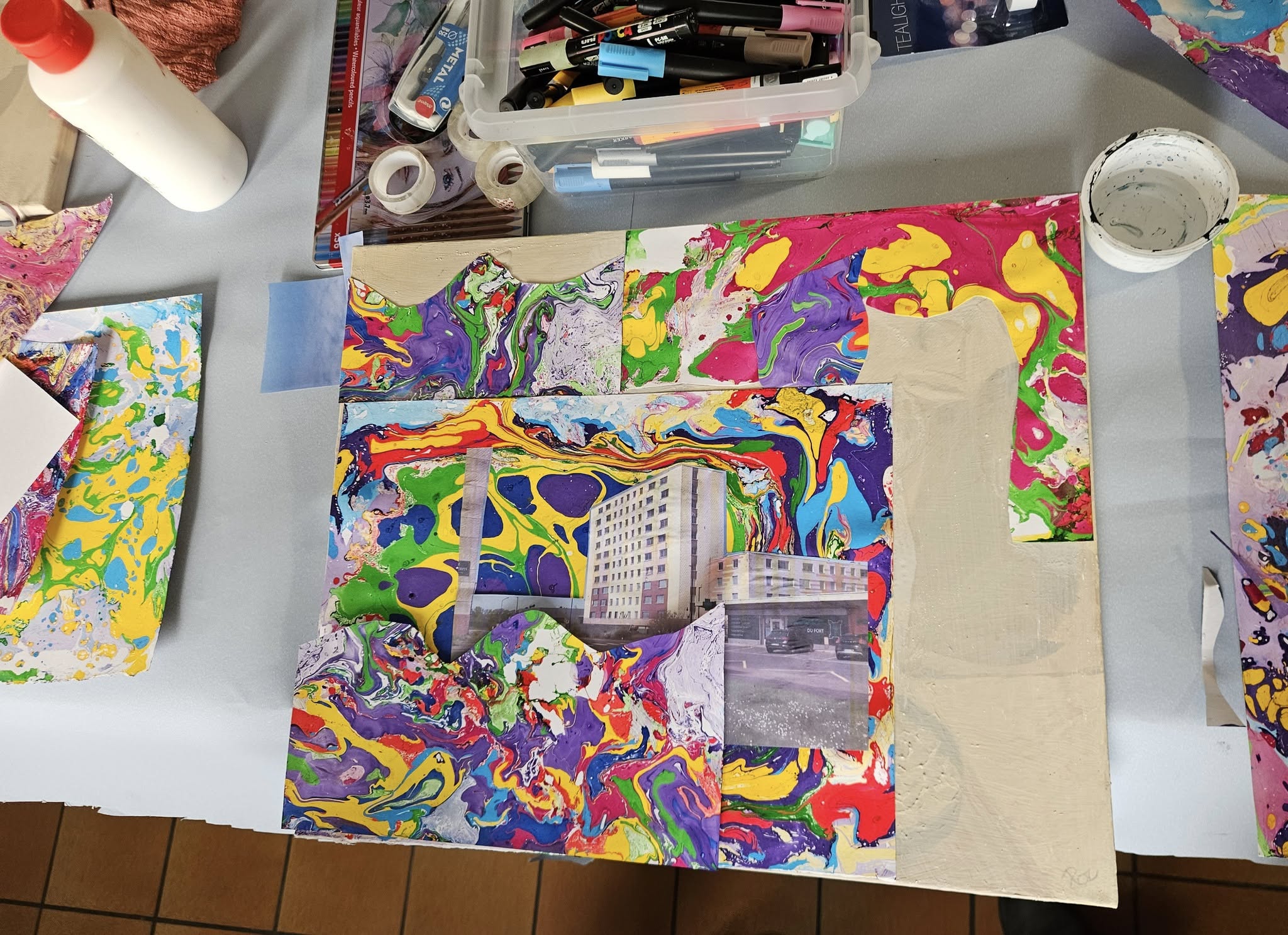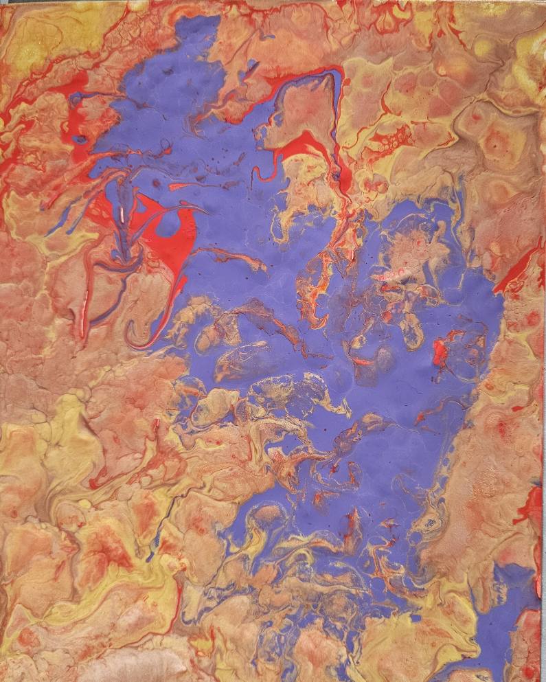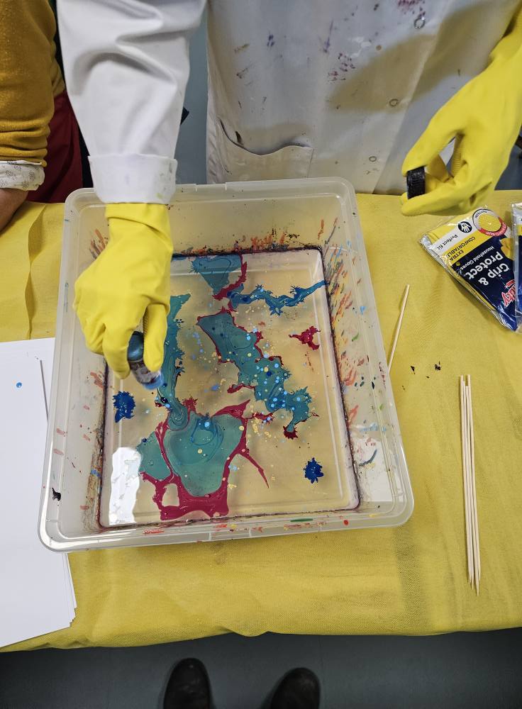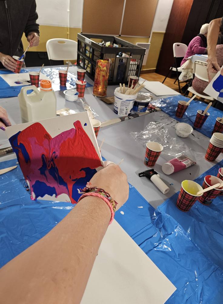 Peinture marbrée et pouring à l'Espace Fort, à Calais, groupe adulte, le 3 décembre 2025.