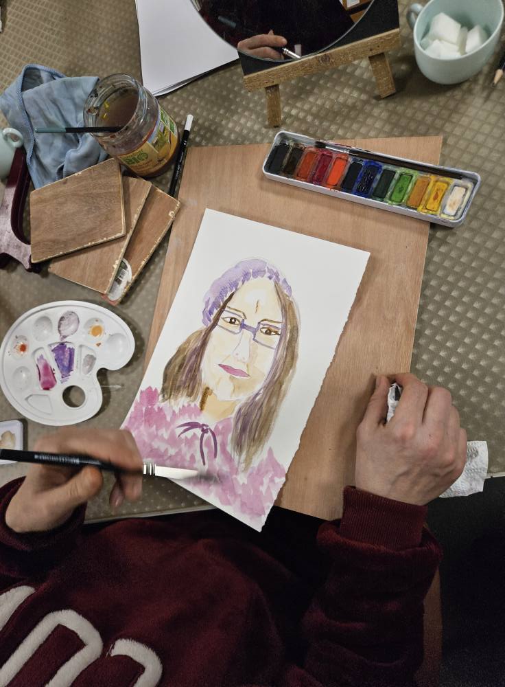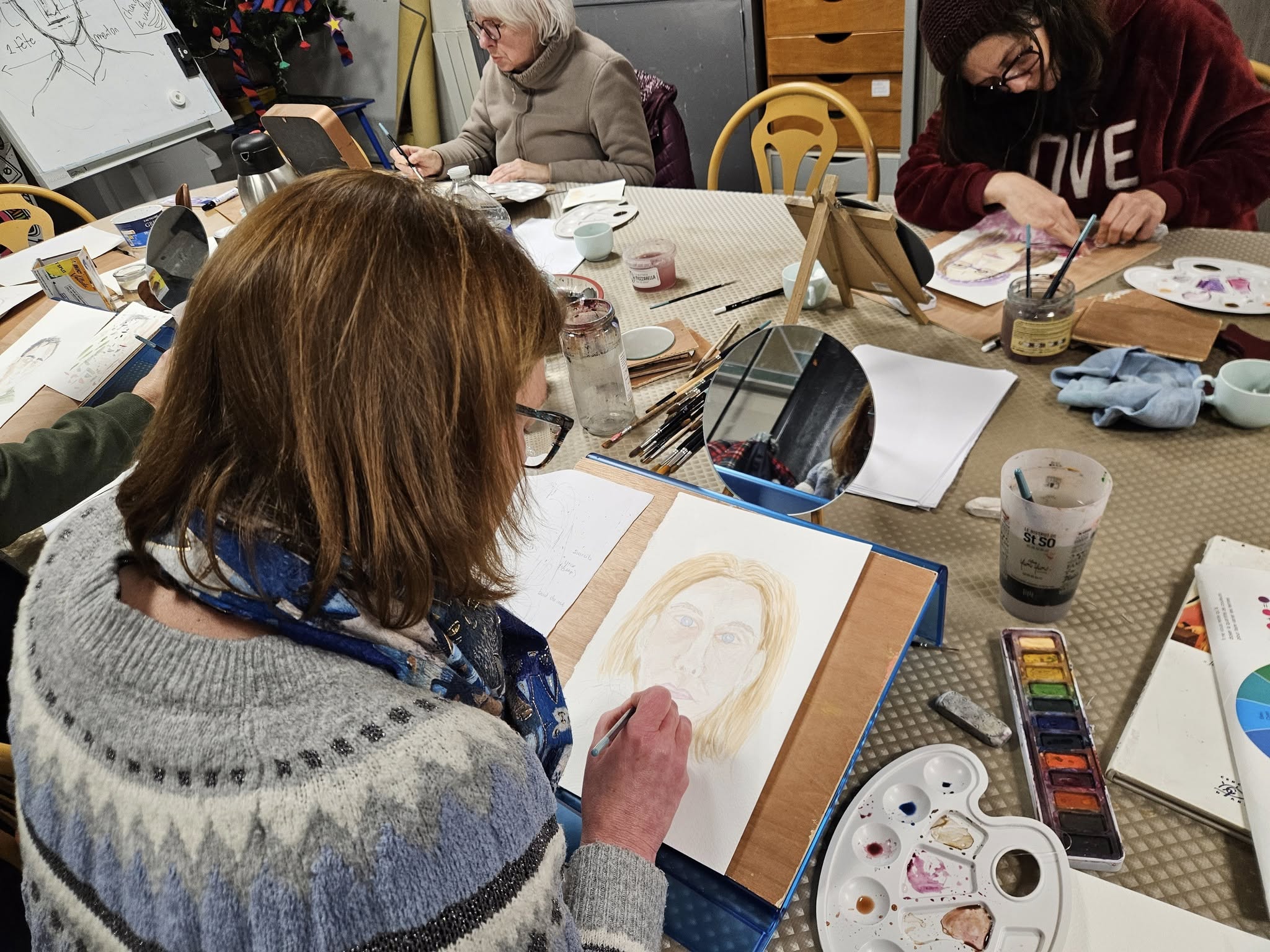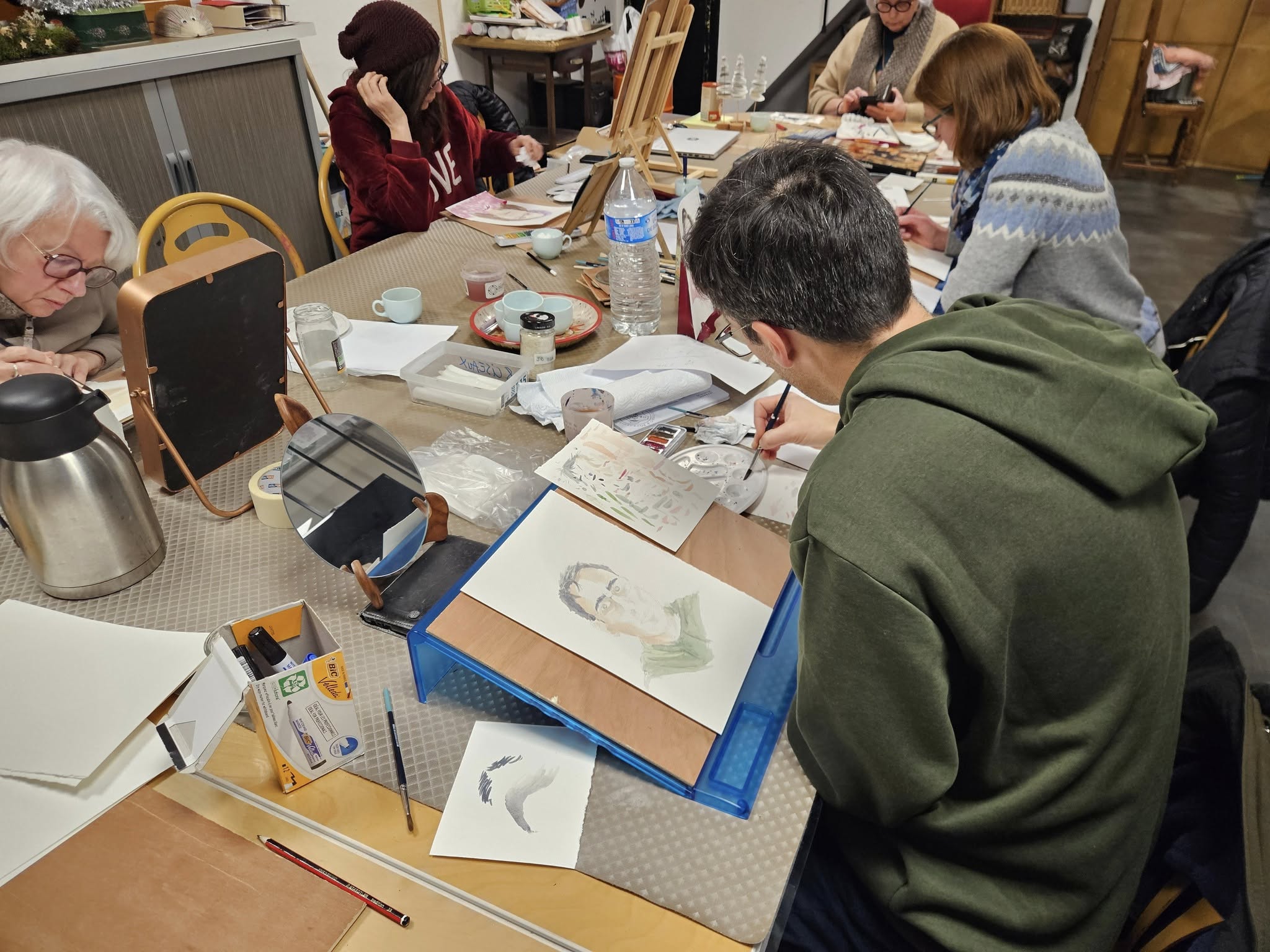 Atelier "Autoportrait à l'aquarelle" à Pique et Presse, le 6 décembre 2025.