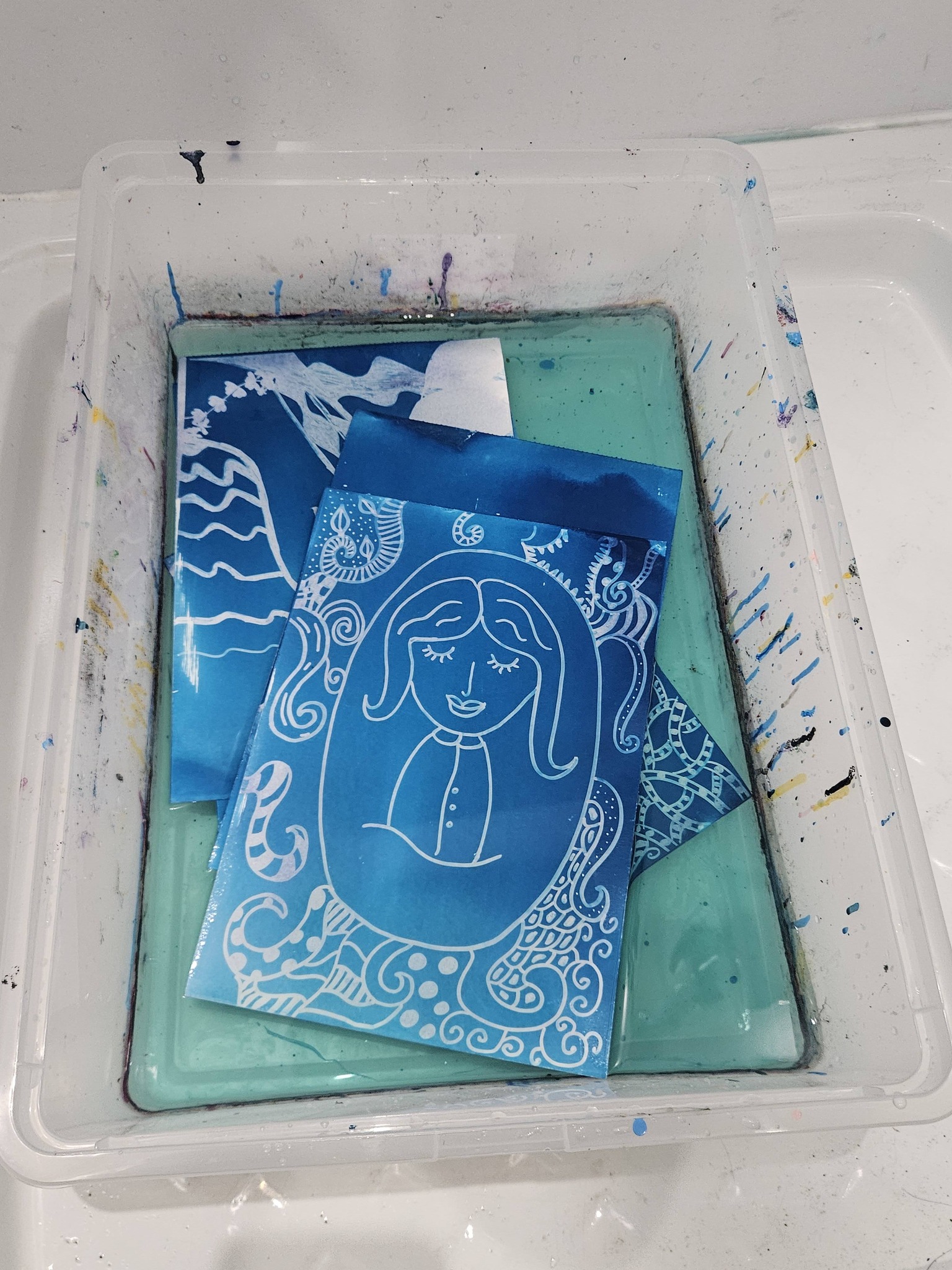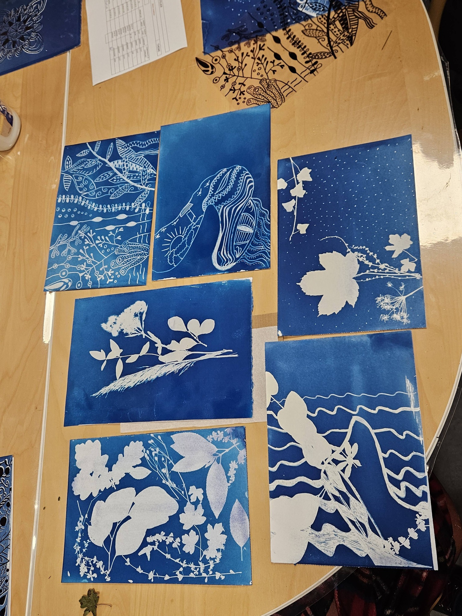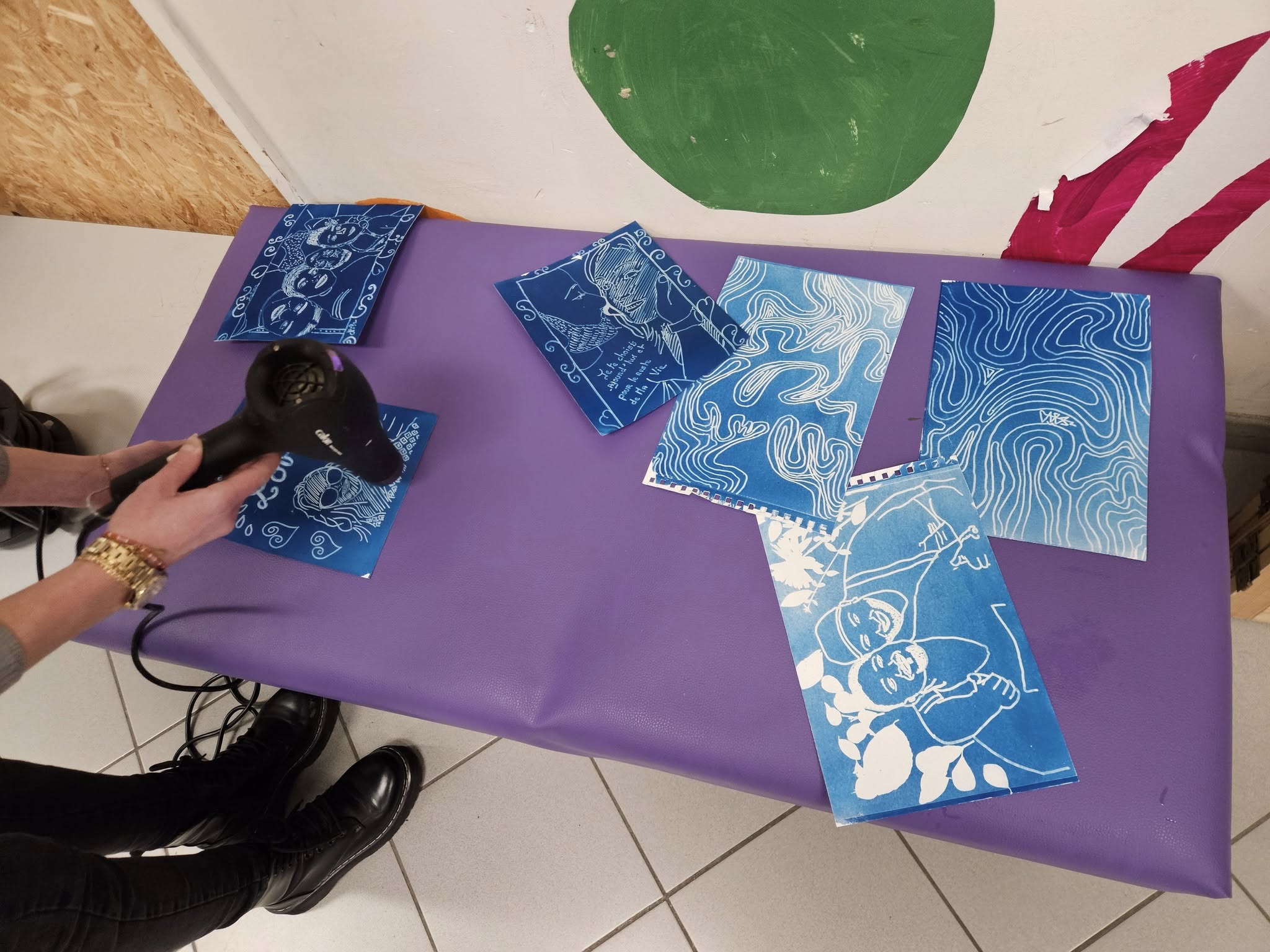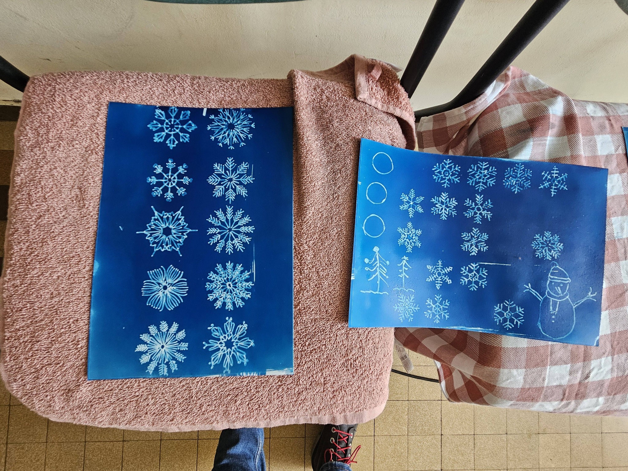 Atelier cyanotype à Pique et Presse, le 19 décembre 2025.