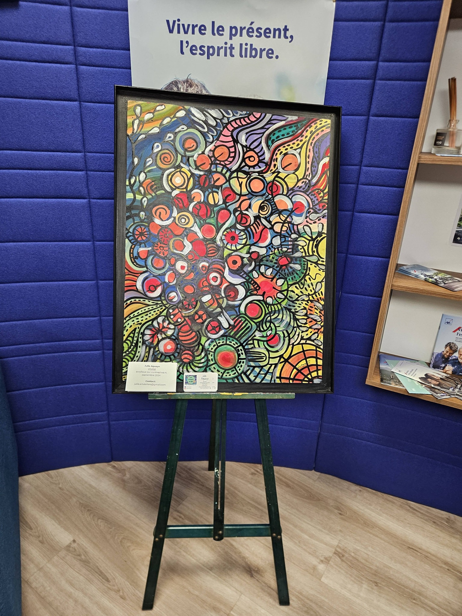 Les ateliers adultes avec l’espace Fort se poursuivent, les participants lâchent prise, vivent des expériences artistiques et c’est beau de voir ça ! Des peintures abstraites , des univers vertigineux et la réalité qui nous échappe…Une belle évasion !