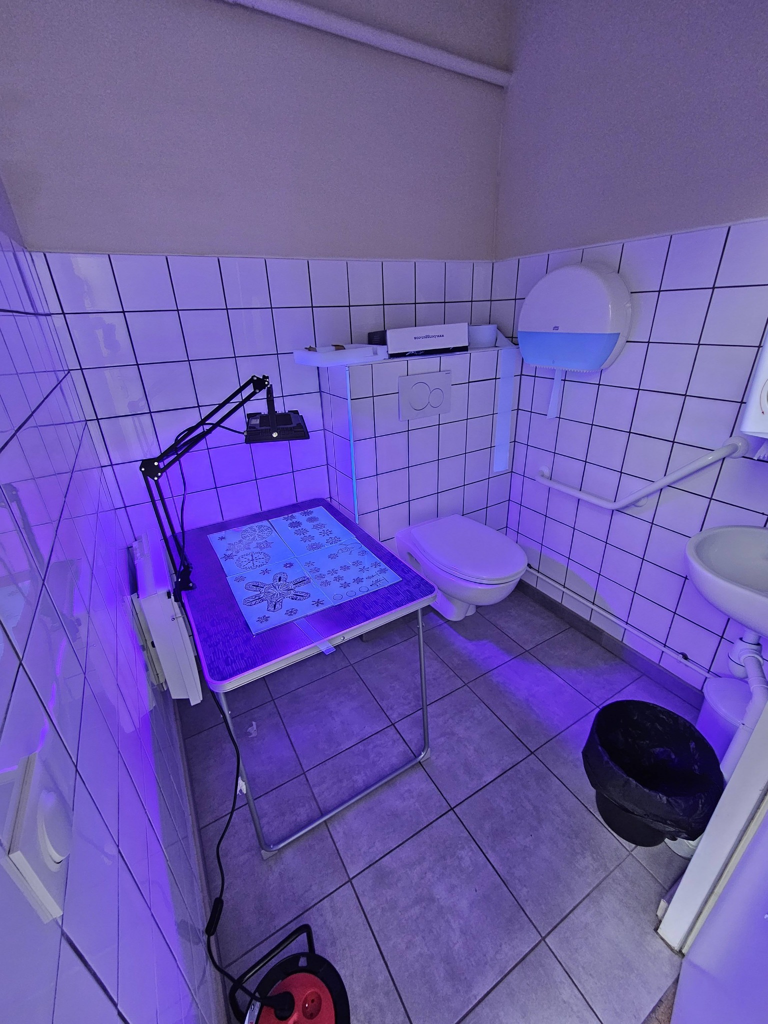 Atelier cyanotype "Le coin des parents" à l'espace Maes, Boulogne-sur-mer, le 11 décembre 2025.
