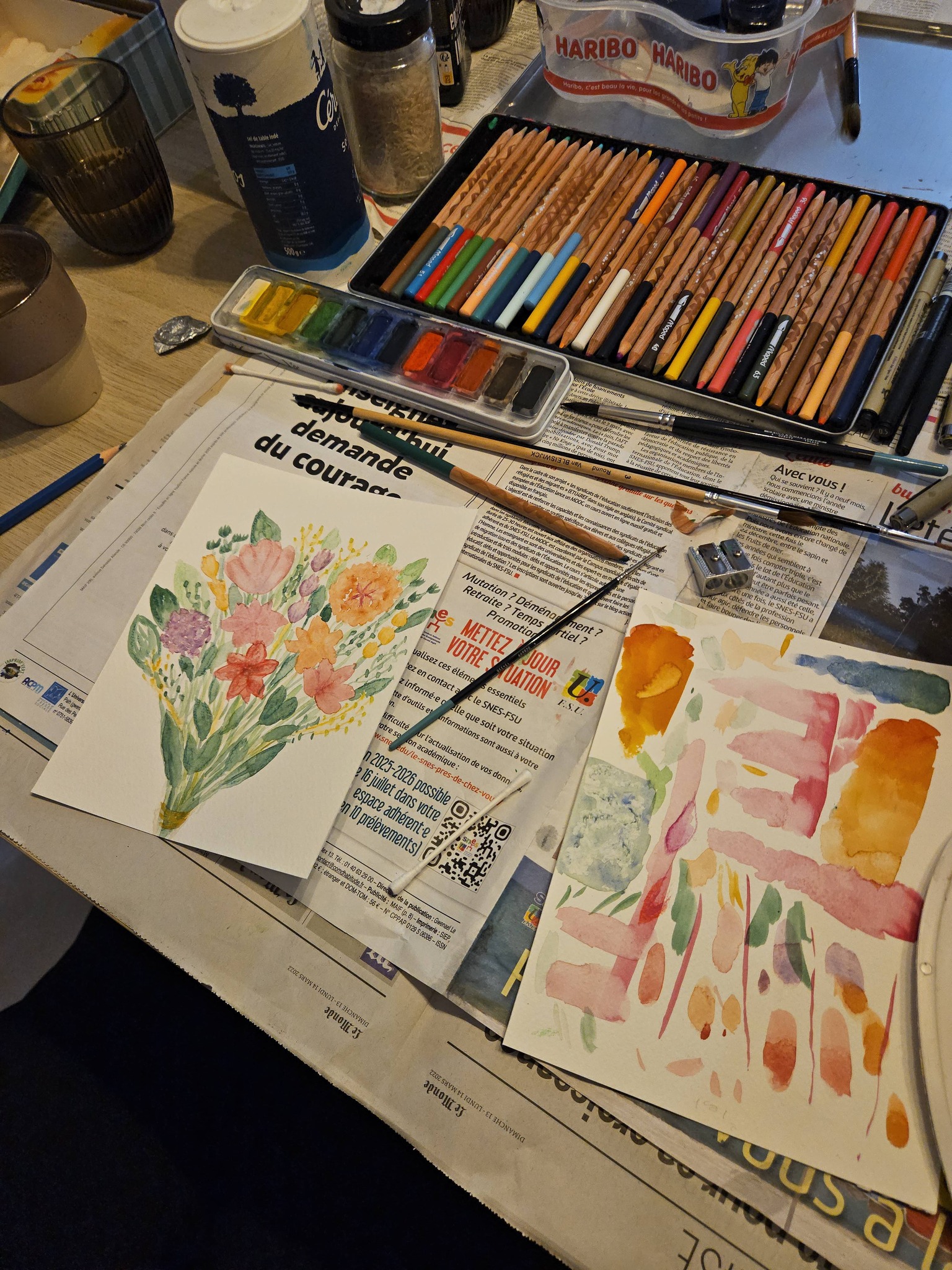 Retours ateliers aquarelle chez Pique et Presse de septembre 2025.