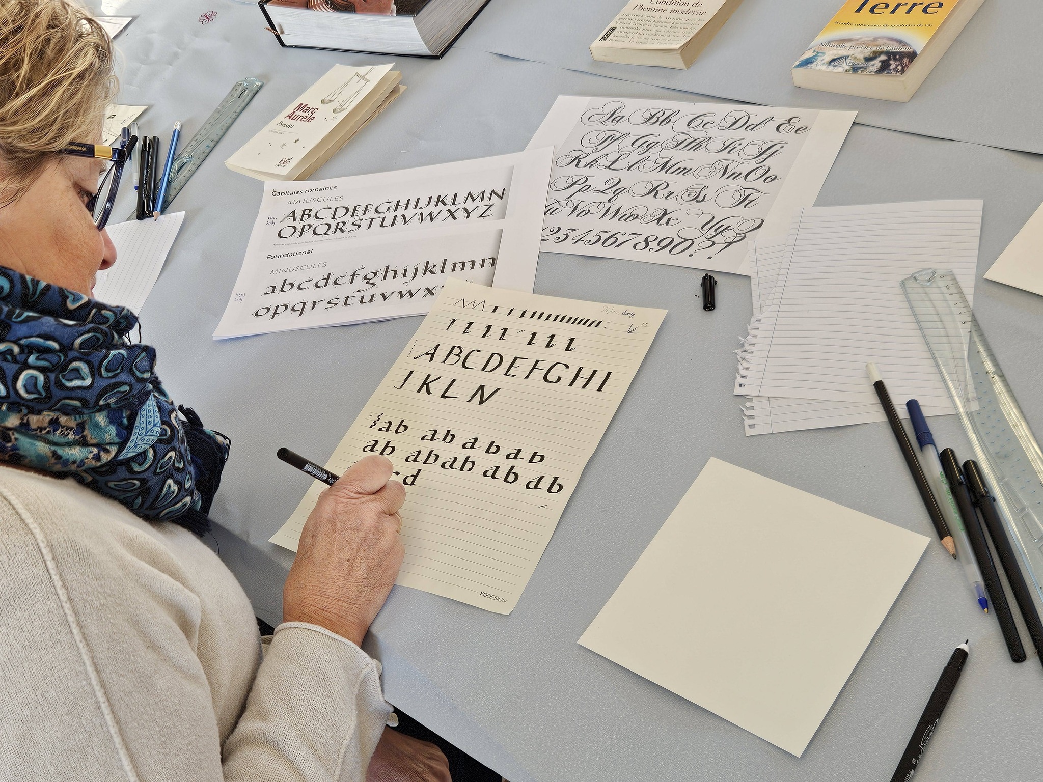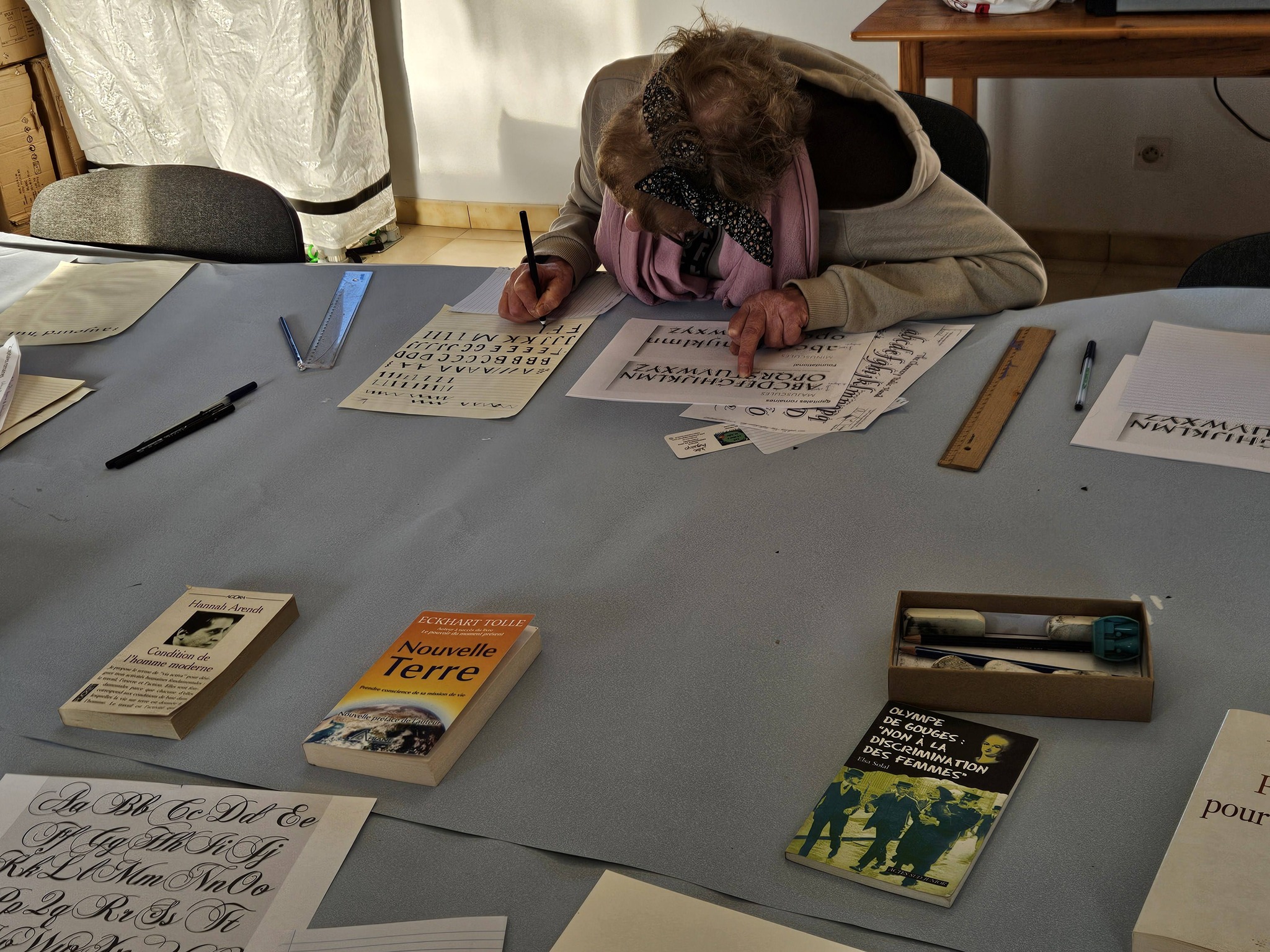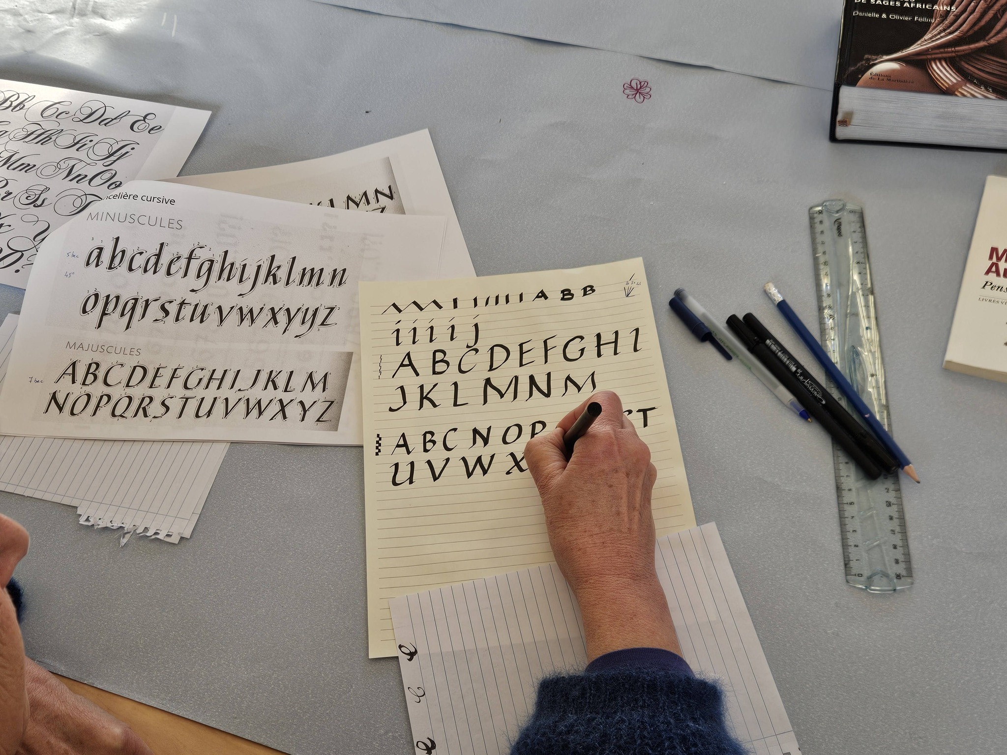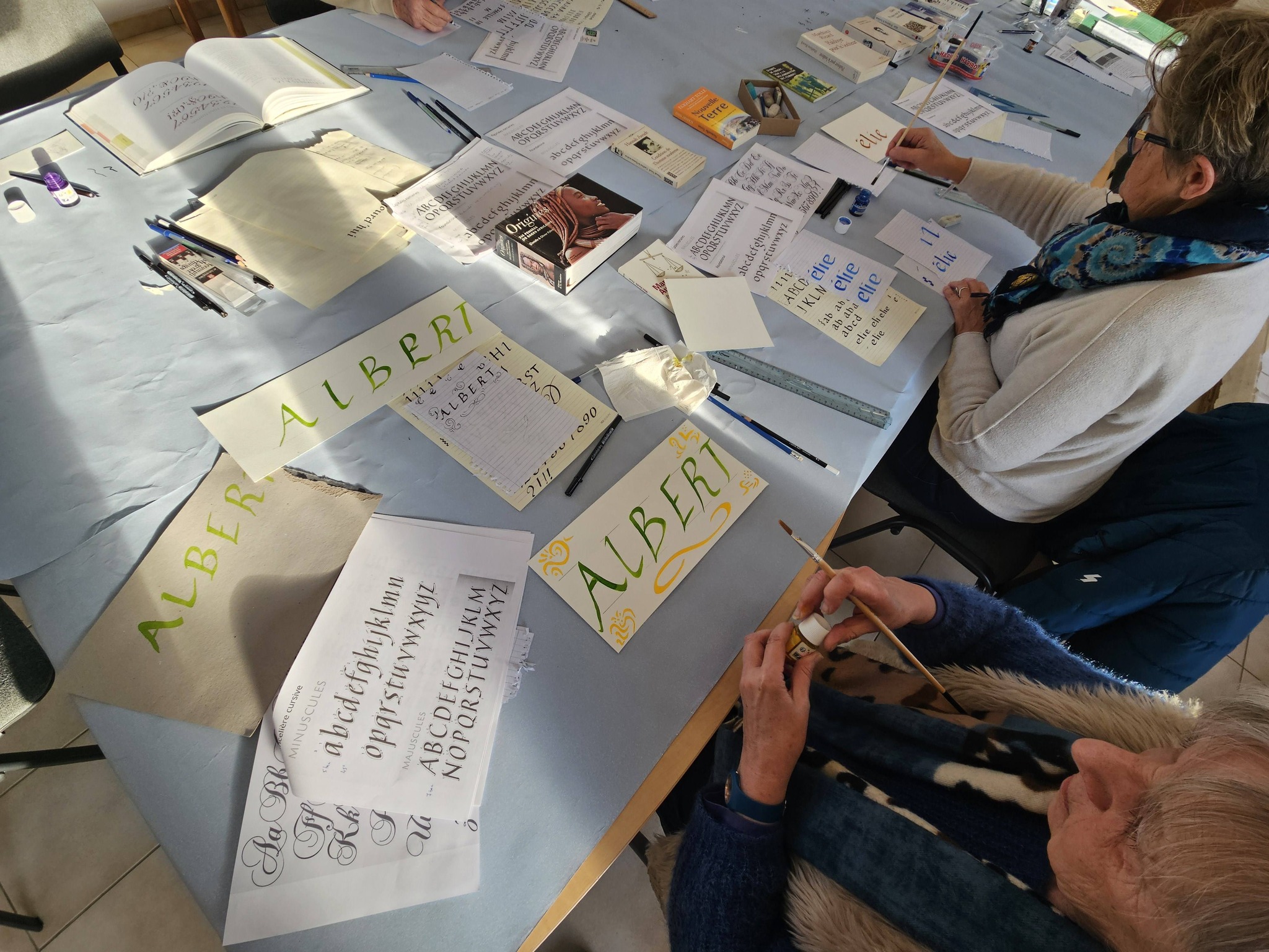 Atelier calligraphie senior à Alembon, le 6 janvier 2026.