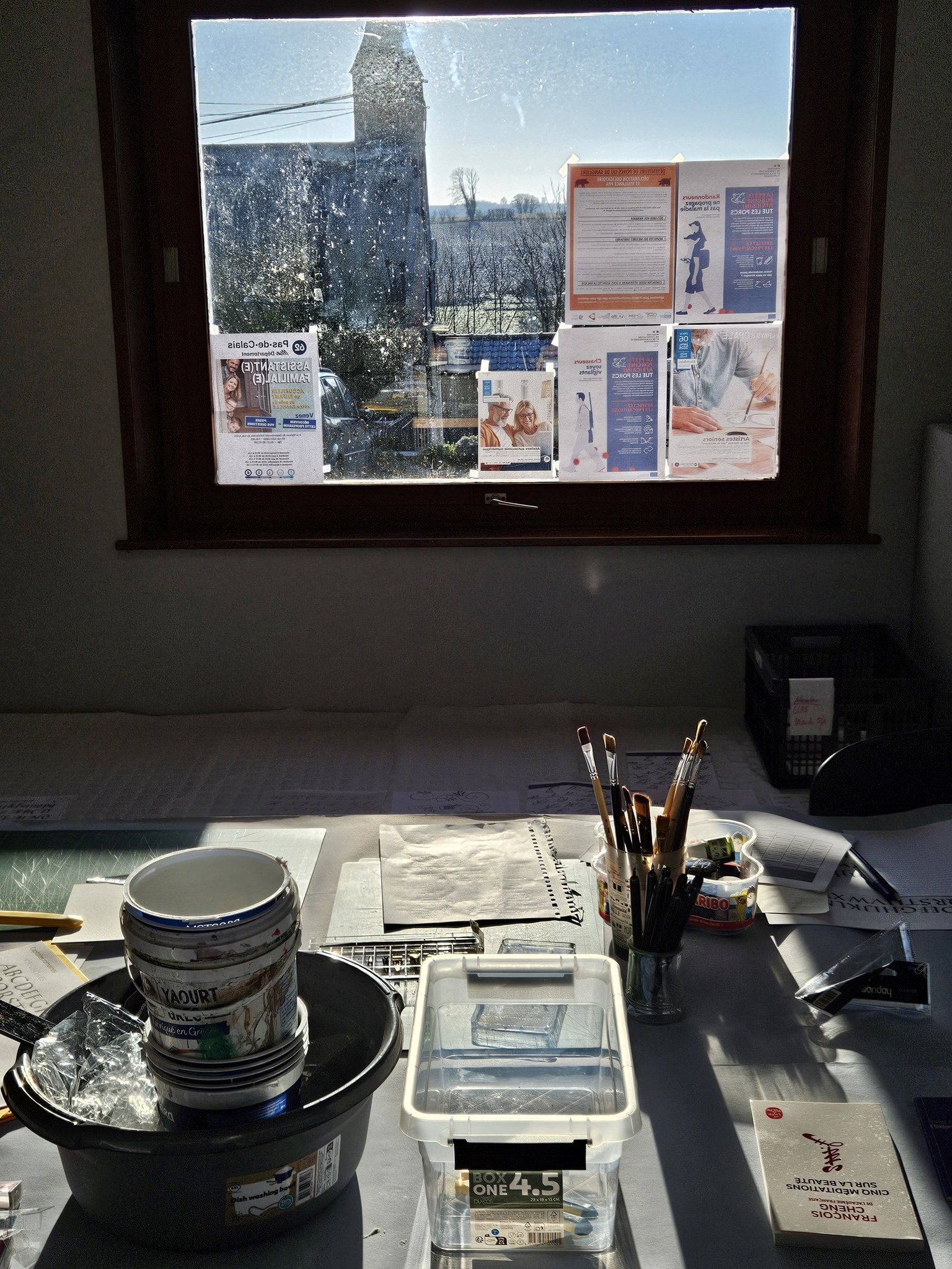 Atelier découverte de l'encre à l'Espace Fort, Calais, mercredi 8 octobre 2025, adultes.