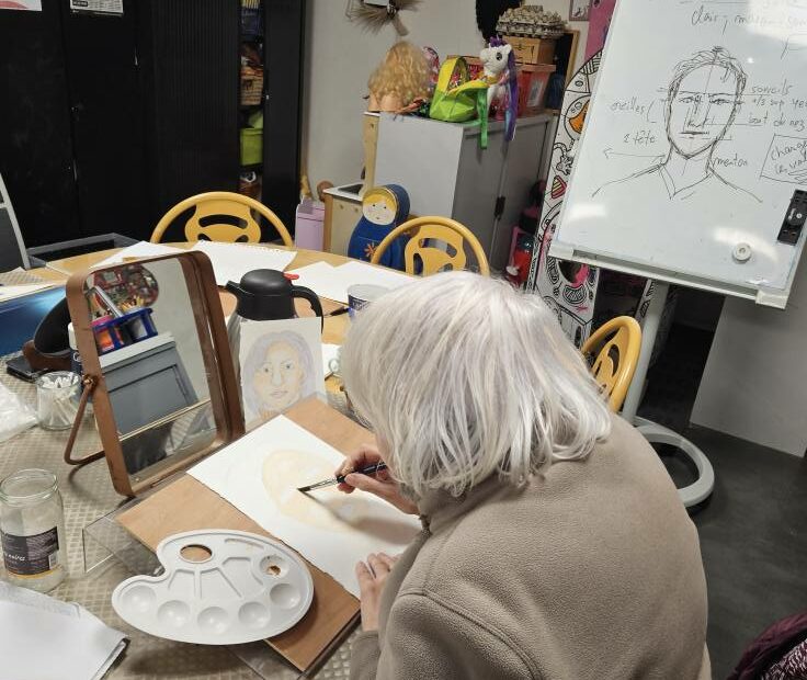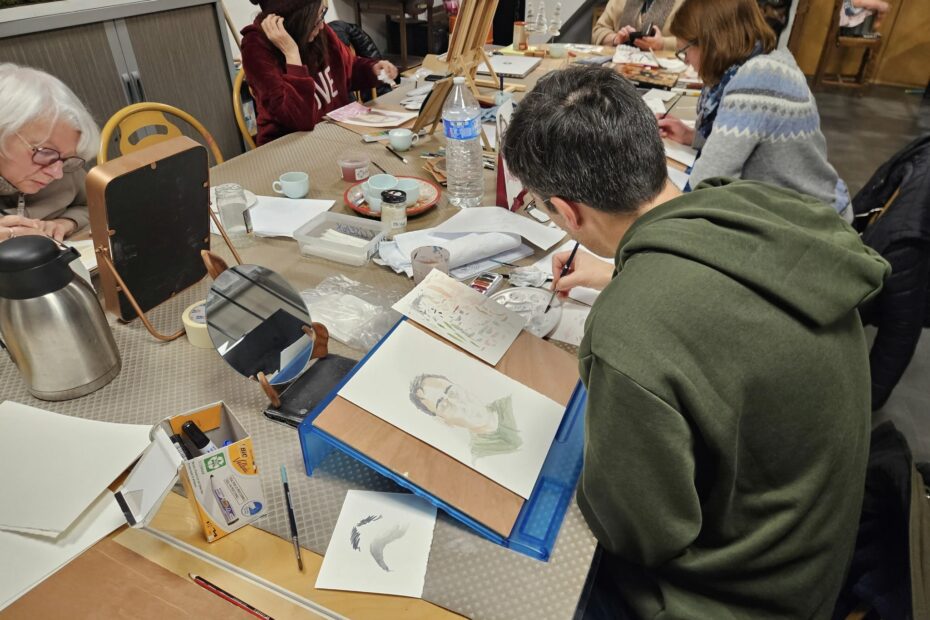 Atelier "Autoportrait à l'aquarelle" à Pique et Presse, le 6 décembre 2025.