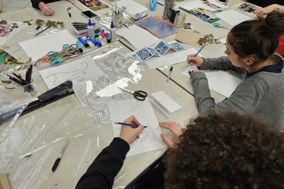 Atelier parents-enfants gravure et Nature au Centre Maes le 8 août 2025