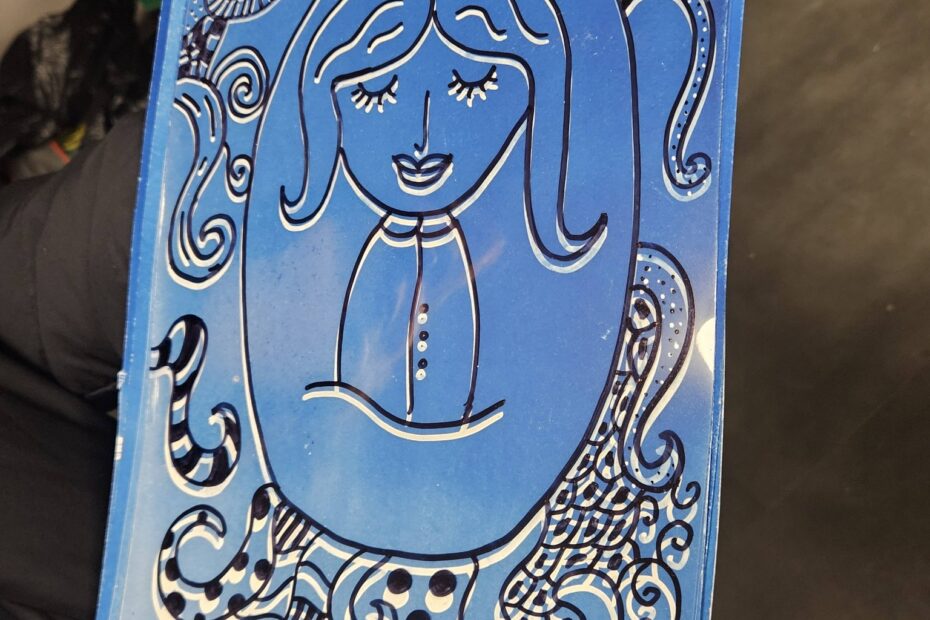 Une après-midi peinture chez un particulier pour réaliser cette représentation d’une machi. La machi est une guérisseuse et chef mapuche. Les Mapuche sont un peuple du sud du Chili et d’Argentine préhispanique. On voit la Machi jouant le kultrun( tambour cérémonial). Immersion dans une culture très loin de nous qui nous fait voyager!
