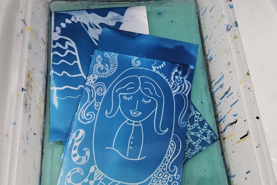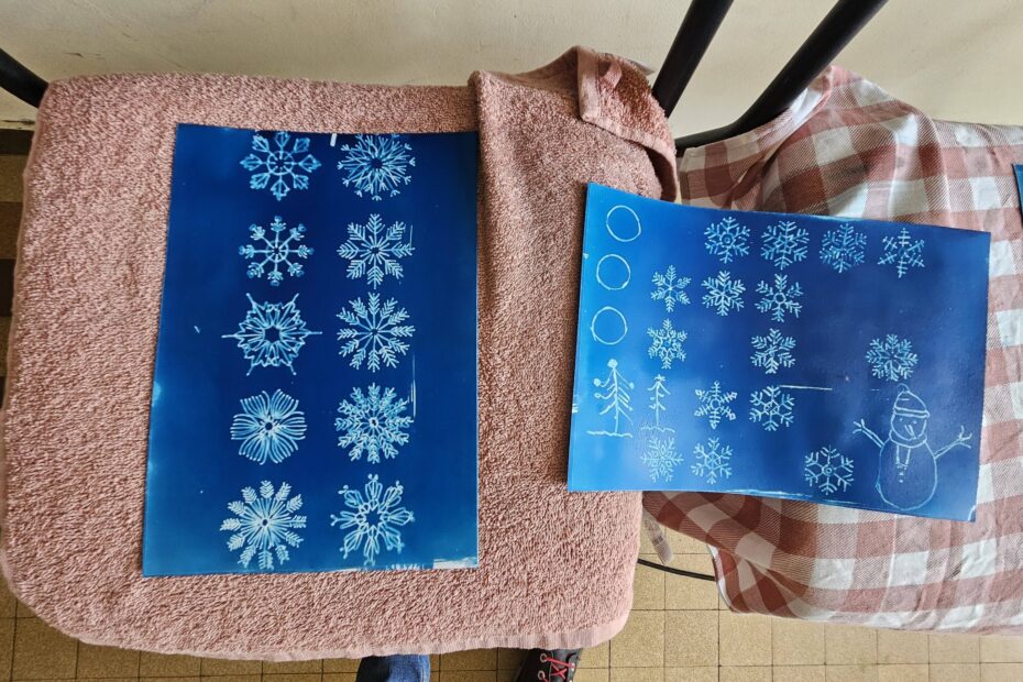 Atelier cyanotype à Pique et Presse, le 19 décembre 2025.
