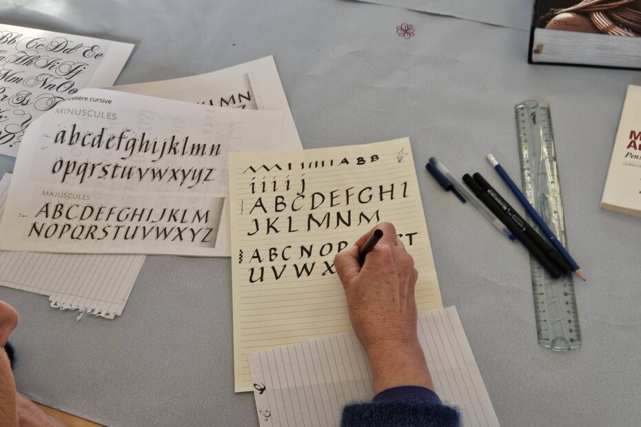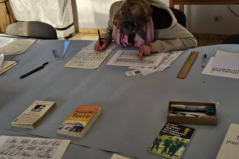 Atelier calligraphie senior à Alembon, le 6 janvier 2026.