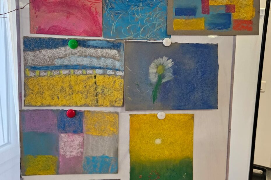 Les ateliers adultes avec l’espace Fort se poursuivent, les participants lâchent prise, vivent des expériences artistiques et c’est beau de voir ça ! Des peintures abstraites , des univers vertigineux et la réalité qui nous échappe…Une belle évasion !